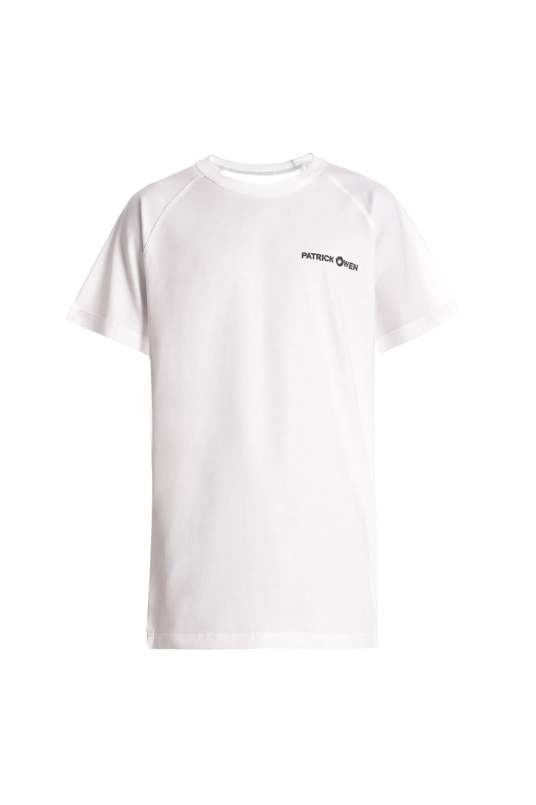 Reversed cotton tee, raglan sleeves, exposed seams.