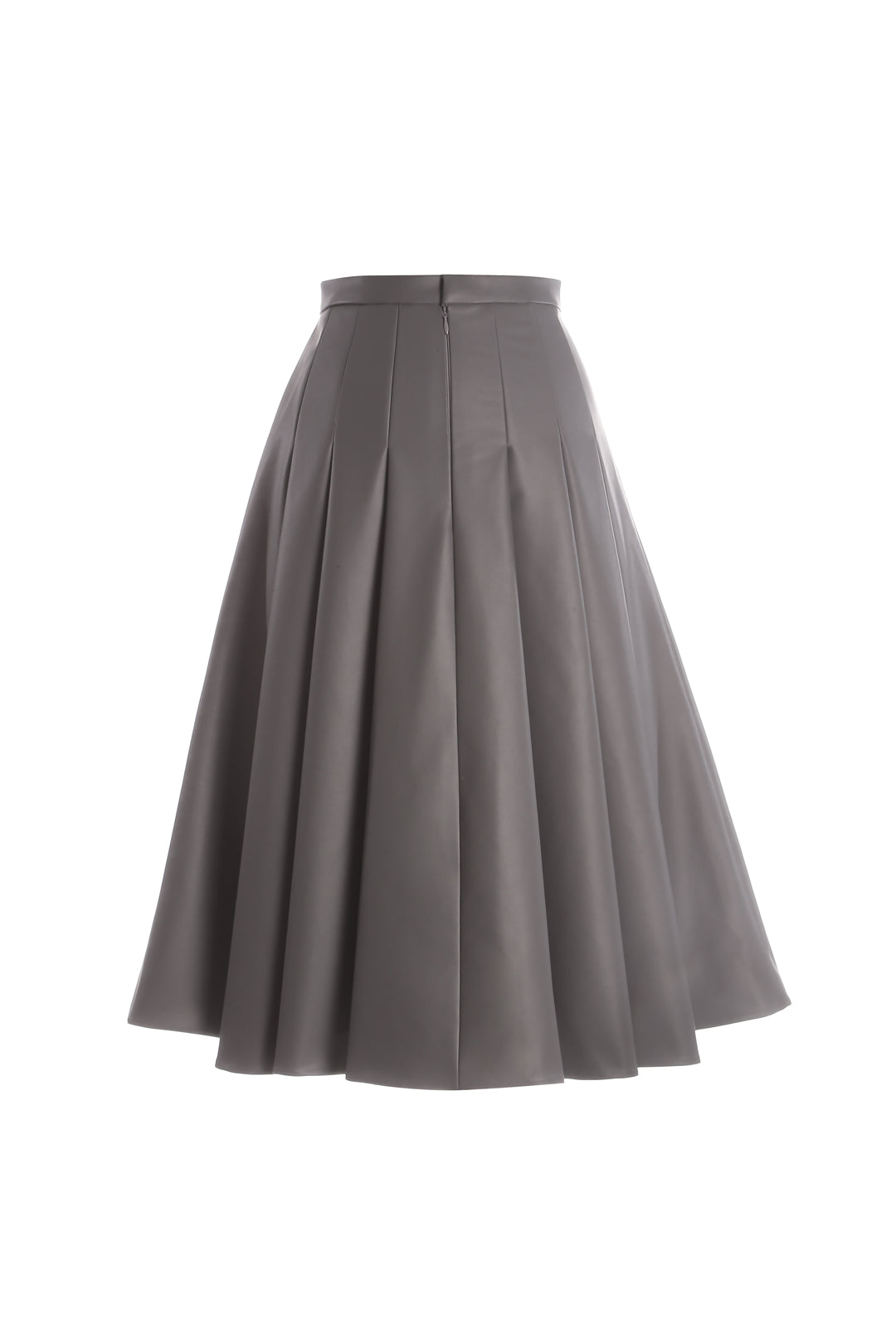Midi length A-Line skirt, knife pleats detail, layered with inner lining, hidden zipper at the back.