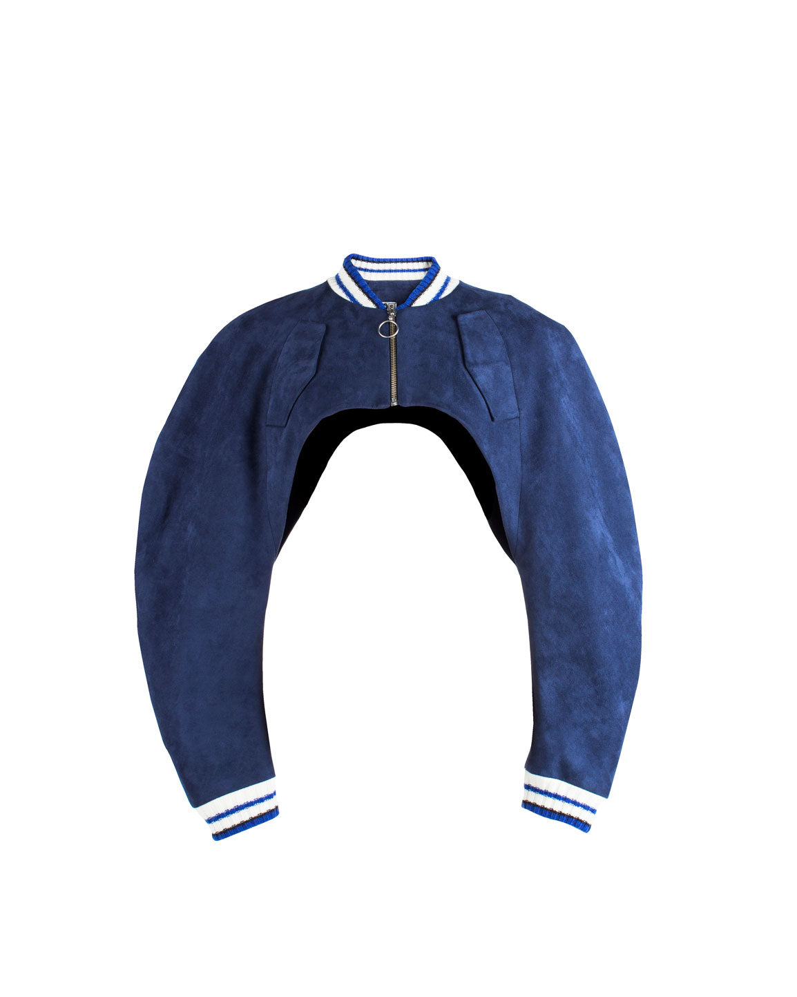 Upper sleeves pockets, sweater ribbed wrist with superlining inner and front zipper opening.