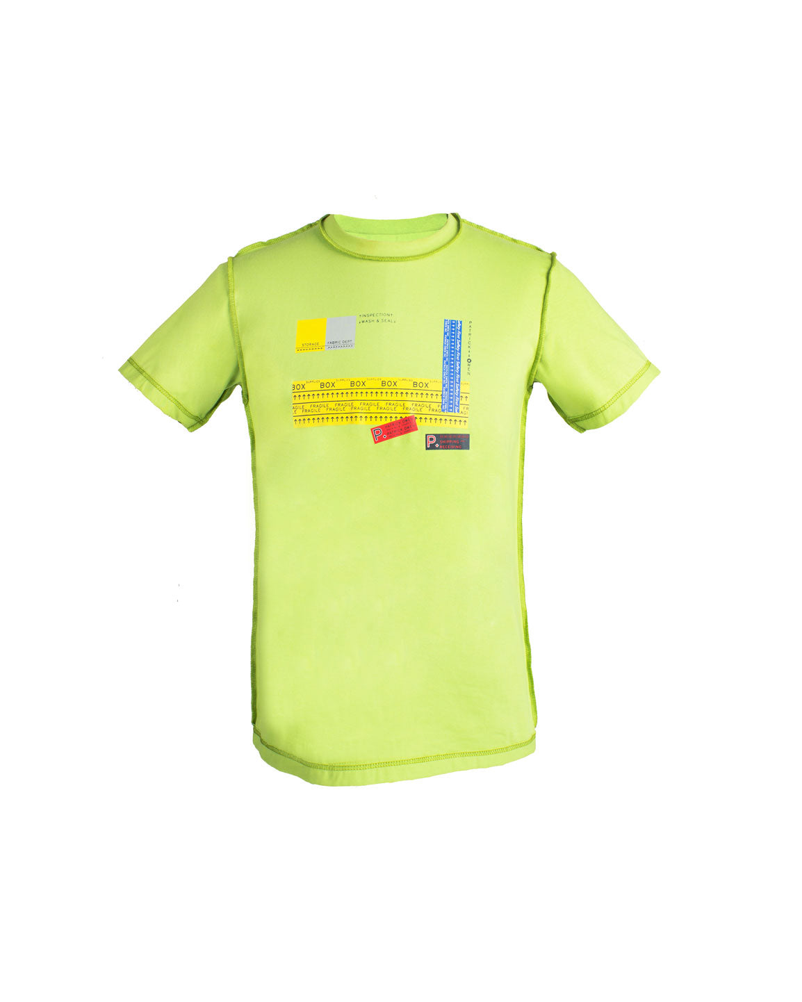 Graphic contribution from Table Six over green pima cotton reversed tee.