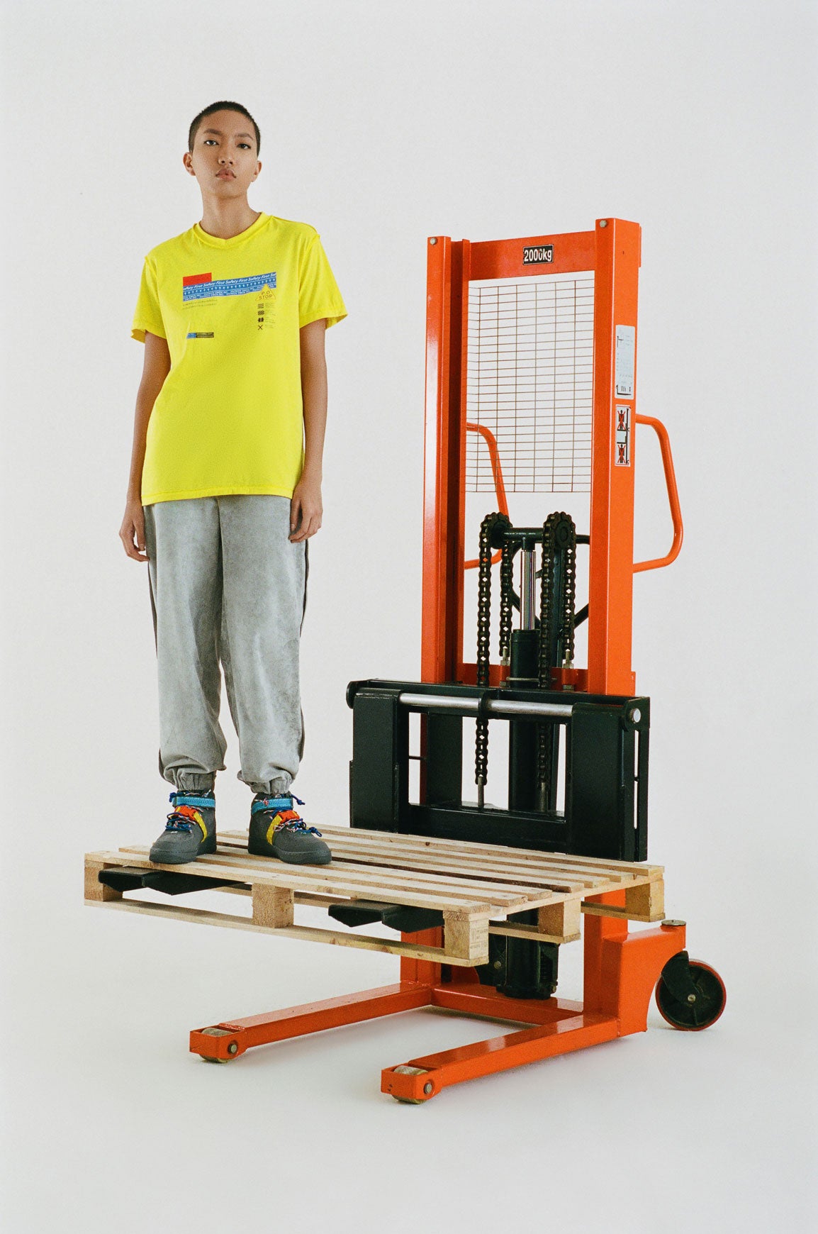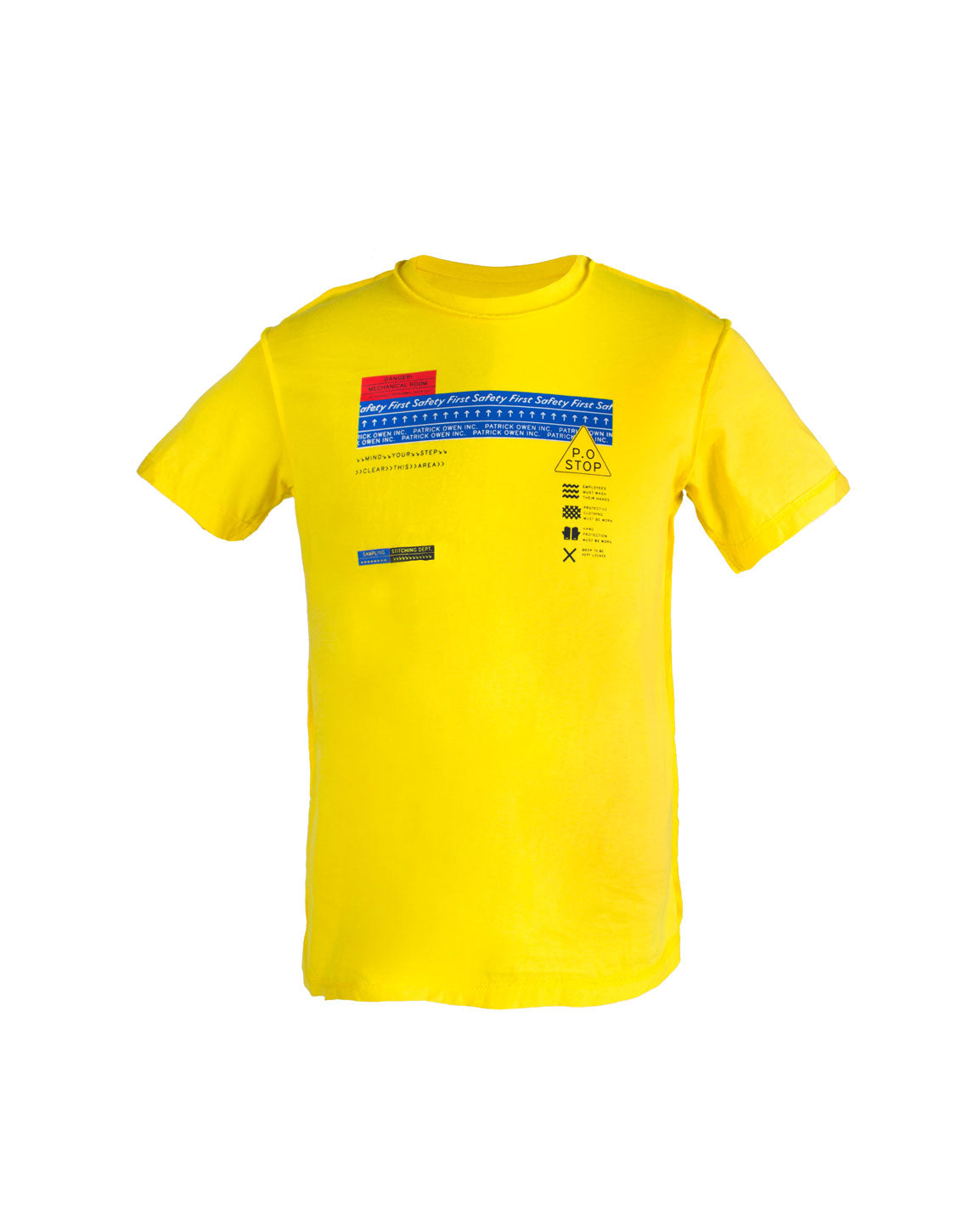 Graphic contribution from Table Six over yellow pima cotton reversed tee.