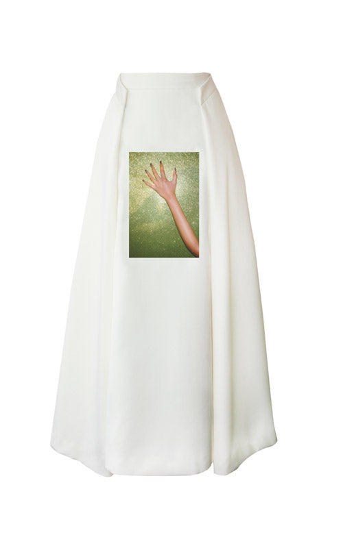 Folded skirt from F/W17 featuring photograph from S/S18 set by Leandro Quintero at the crotch area. Hidden zipper at the back and fully lined.